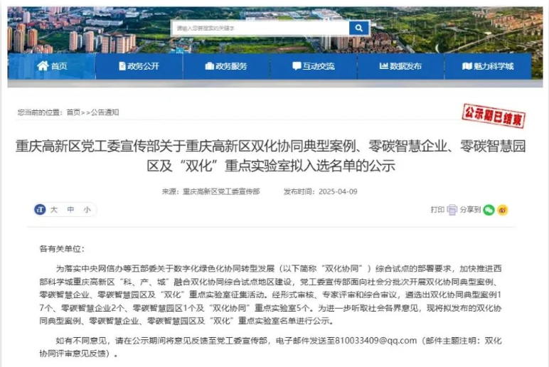 近日,重慶高新區(qū)黨工委宣傳部正式公布重慶“零碳智慧企高新區(qū)“雙化協(xié)同典型案例”、業(yè)”、“零碳智慧園區(qū)”及“雙化”重點(diǎn)實(shí)驗(yàn)室候選名單。...