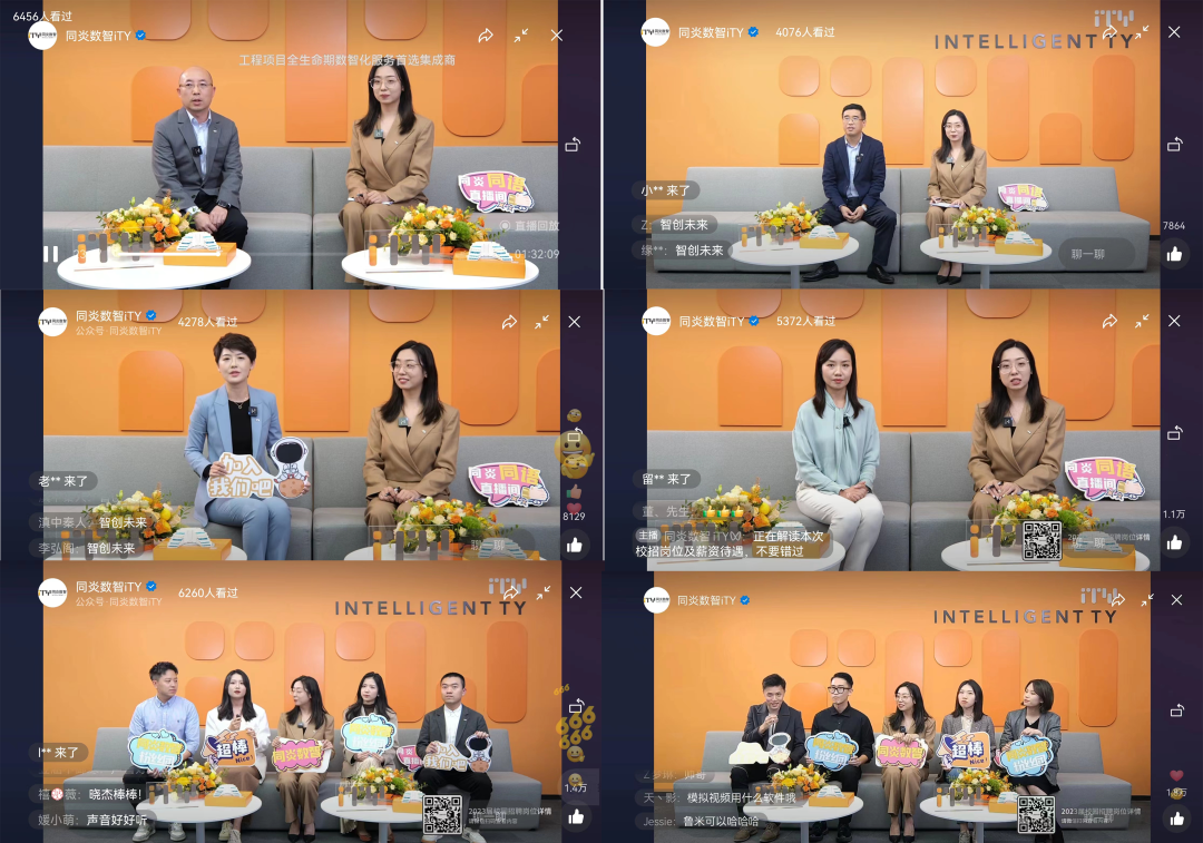 2022年10月12日下午,同炎數(shù)智開展了2023屆線上校園招聘會(huì)— “Hi,Super i 星人” 專場直播。本次線上校園招聘會(huì)由招聘官吳亞玲主持,全程通過同炎數(shù)智視頻號(hào)進(jìn)行直播,累計(jì)收看人數(shù)6660人,收獲點(diǎn)贊22866次,評(píng)論2133條。截至直播結(jié)束,共收到海內(nèi)外各大院校應(yīng)屆生簡歷200余份。
