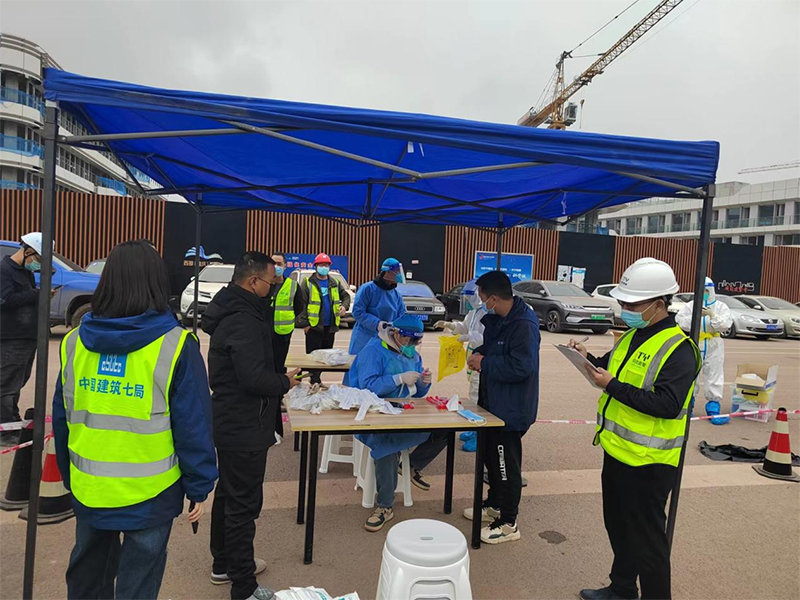 “請(qǐng)按秩序排好隊(duì),請(qǐng)戴好口罩、保持2米距離,提前掃碼登記信息……”在科學(xué)谷全咨項(xiàng)目部所管轄的在建五個(gè)項(xiàng)目,三個(gè)核酸采樣點(diǎn),每天逾1600人進(jìn)行核酸檢測(cè),現(xiàn)場(chǎng)秩序井然、高效。采樣點(diǎn)現(xiàn)場(chǎng),全咨工程師們有條不紊地工作著。每天清晨,全咨工程師早早到達(dá)核酸采樣點(diǎn)集合,一起做好場(chǎng)地布置等準(zhǔn)備工作;采樣開始后,按照網(wǎng)格化管理要求分組分時(shí)有序引導(dǎo)工友掃核酸碼、維護(hù)現(xiàn)場(chǎng)秩序,耐心幫助無智能手機(jī)、不熟悉手機(jī)操作的工友做好信息錄入,有力保障核酸檢測(cè)工作高效、安全開展。聞“疫”而動(dòng),全然忘我。