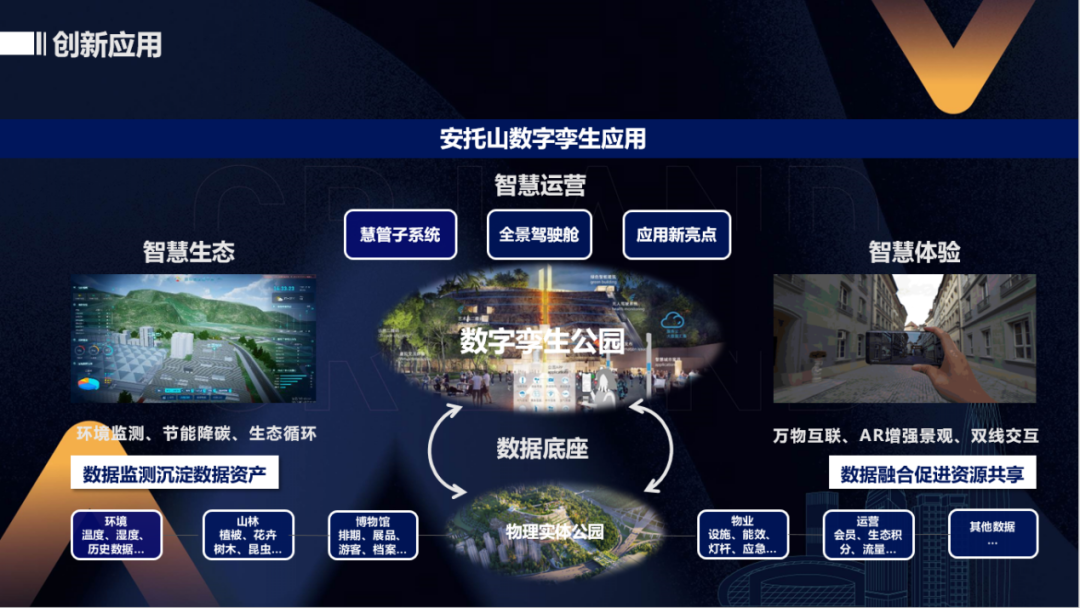 建設期間沉淀數(shù)據(jù)資產(chǎn),基于物理實體公園數(shù)據(jù)同步完成線上數(shù)字孿生公園,通過改變傳統(tǒng)環(huán)保環(huán)境監(jiān)測方式,運用環(huán)境智能監(jiān)測、環(huán)境認知分析延伸至趨勢預警研判,實現(xiàn)從“人”防到“智”防,使護山、理水、營林、清湖、豐草等工作通過數(shù)智手段更高效管理;同時通過設施統(tǒng)一控制和數(shù)據(jù)采集分析,實現(xiàn)照明和水循環(huán)精細化自動調節(jié),達到節(jié)能降碳,打造城市雙碳的樣板間;將GEP核算運用于智慧公園搭建中,智能觀測動植物生長情況,搭建環(huán)境生態(tài)保護積分體系,鼓勵觀園者積極參與生態(tài)保護環(huán)境,實現(xiàn)“生物興”、“人文興”推動“城市興”的生態(tài)循環(huán)系統(tǒng);在建設初期設計中,以“打造一個有血有肉有情感的智慧公園”為目標,設計多種互動裝置,實現(xiàn)萬物互聯(lián),讓整個公園靈動而有趣;為滿足以生態(tài)藝術為主題,將藝術遍布各處,運用AR元宇宙相關技術,使景色虛實結合,實可欣賞青山綠水,虛可暢游如夢境;最終將以上的相關數(shù)據(jù)進行匯聚分析,提煉數(shù)據(jù)資產(chǎn),支撐輔助科學決策,構建公園慧管系統(tǒng),改變傳統(tǒng)公園防控、文化和服務模式,減少人力資源浪費,提高管理效率,實現(xiàn)智慧運營。