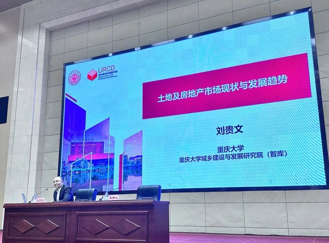 重慶大學(xué)副校長劉貴文以《土地及房地產(chǎn)市場現(xiàn)狀與發(fā)展趨勢》為題做專題分享。