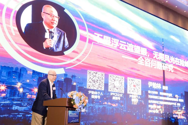 天津理工大學(xué)公共項(xiàng)目與工程造價(jià)研究所(IPPCE)所長、教授、博導(dǎo);中國民航大學(xué)經(jīng)管學(xué)院學(xué)術(shù)院長;尹塾智庫主席尹貽林做《不畏浮云遮望眼 無限風(fēng)光在險(xiǎn)峰——全咨問題研究》主題演講。