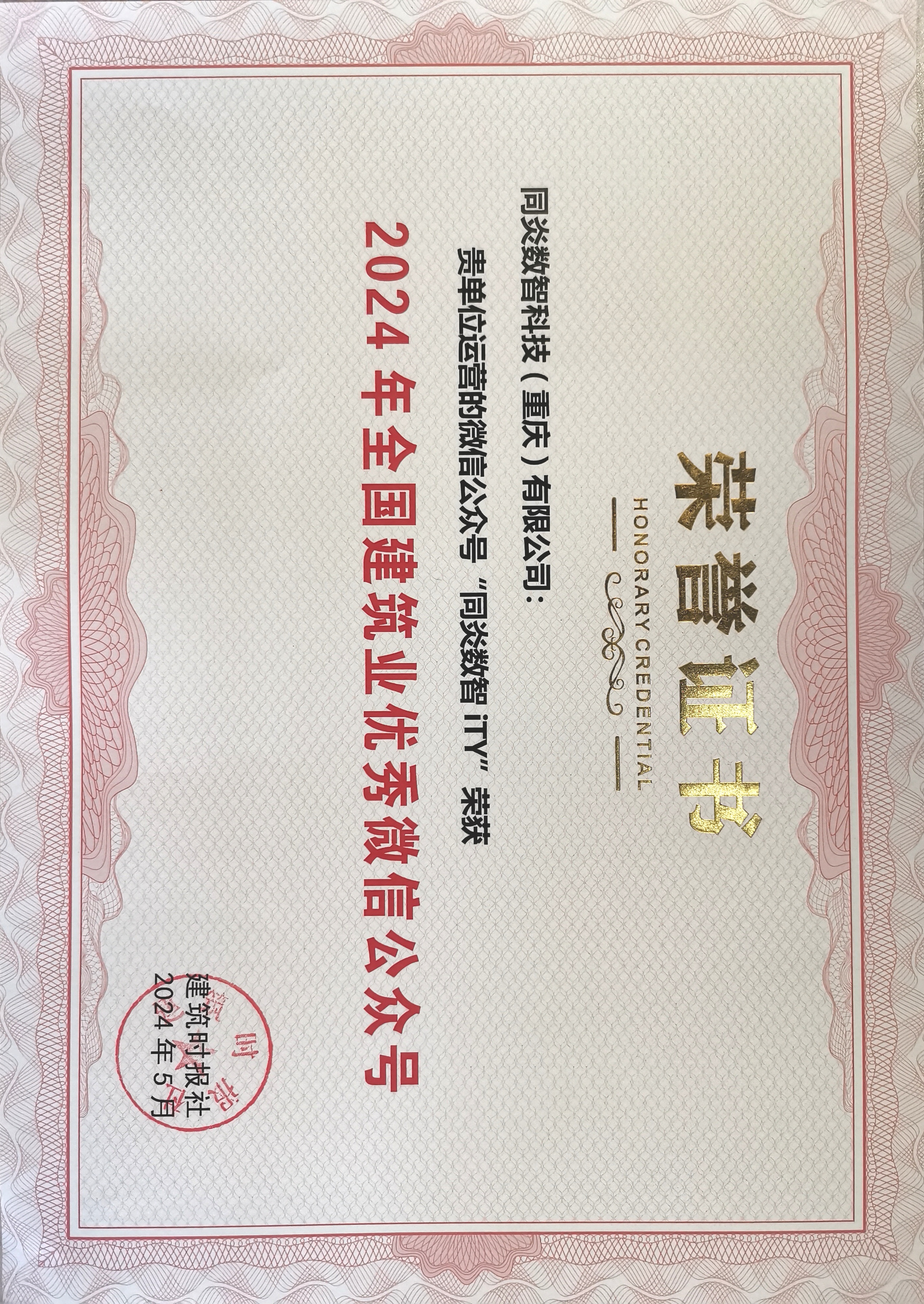 同炎數(shù)智公眾號連續(xù)三年榮獲“全國建筑業(yè)優(yōu)秀微信公眾號”稱號