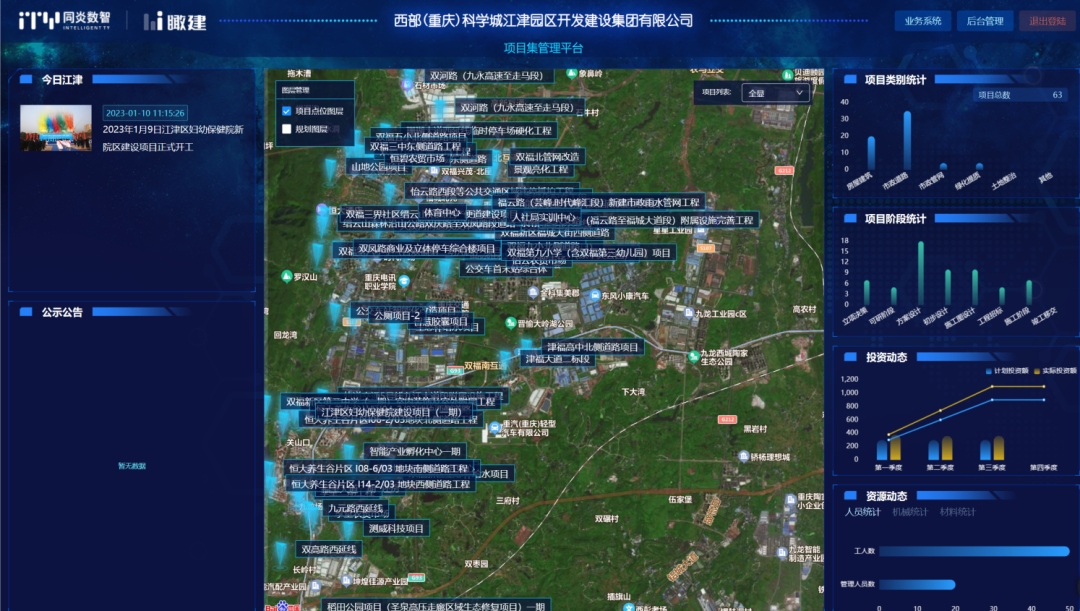 項目集管理平臺運用GIS、大數(shù)據(jù)等技術(shù)手段,實現(xiàn)了對科投集團(tuán)所有項目全生命期內(nèi)的前期、質(zhì)量、安全、投資、進(jìn)度等目標(biāo)的全覆蓋總體管控。項目集平臺的上線也是西部(重慶)科學(xué)城江津科投集團(tuán)推動數(shù)字化建設(shè)轉(zhuǎn)型的重要里程牌。