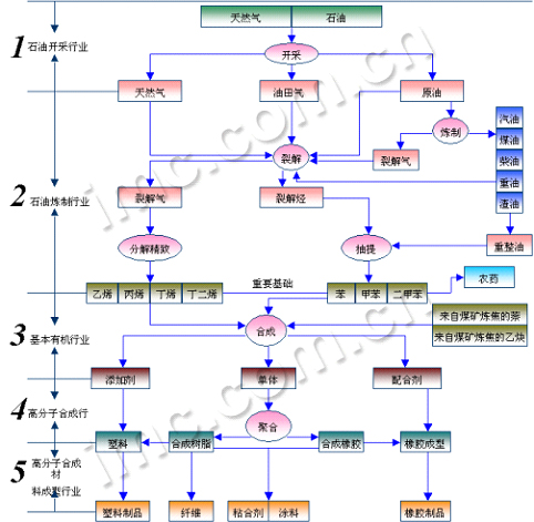 石油化工是以石油和天然氣為原料,生產(chǎn)石油產(chǎn)品和石油化工產(chǎn)品。石油產(chǎn)品主要包括各種燃料油(汽油、煤油、柴油等)和潤滑油以及液化石油氣、石油焦碳、石蠟、瀝青等。生產(chǎn)這些產(chǎn)品的加工過程常被稱為石油煉制,簡稱煉油。石油化工產(chǎn)品是以煉油過程提供的原料油進一步化學(xué)加工獲得。首先對原料油和氣(如丙烷、汽油、柴油等)進行裂解,生成以乙烯、丙烯、丁二烯、苯、甲苯、二甲苯為代表的基本化工原料。再以基本化工原料生產(chǎn)多種有機化工原料(約200種)及合成材料 (塑料、合成纖維、合成橡膠)。